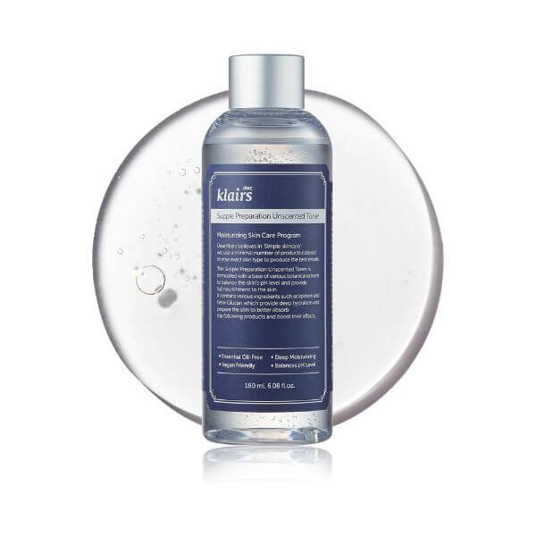 Klairs Supple Preparation Unscented Toner is a classic hydrating toner loved for its gentle, fragrance-free formula. It provides balanced moisture while helping calm the skin, making it suitable for nearly all skin types. The texture is slightly thicker than water but still light enough for everyday use.